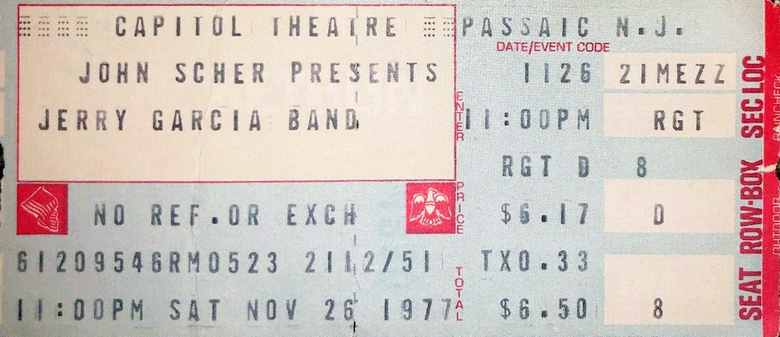 ads: The Record (Hackensack, NJ), November 13, 1977, p. B27 |Village Voice, November 28, 1977, p. unk, via Google News ( billing "Jerry Garcia Band, featuring Jerry Garcia, Keith Godchaux, Donna Godchaux, John Kahn", plus "special guest Pierce Arrow")