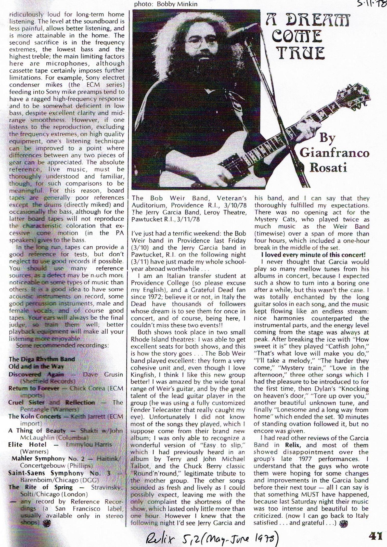 Garcia and crew were interviewed by Andy Gefen earlier in the day at WBRU-FM in Provy. It is a classic!