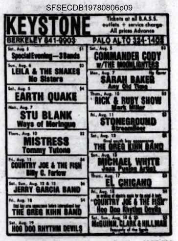 • ads: San Francisco Sunday Examiner and Chronicle Datebook, August 6, 1978, p. 9 | 'San Francisco Sunday Examiner and Chronicle Datebook'', August 13, 1978, p. 11