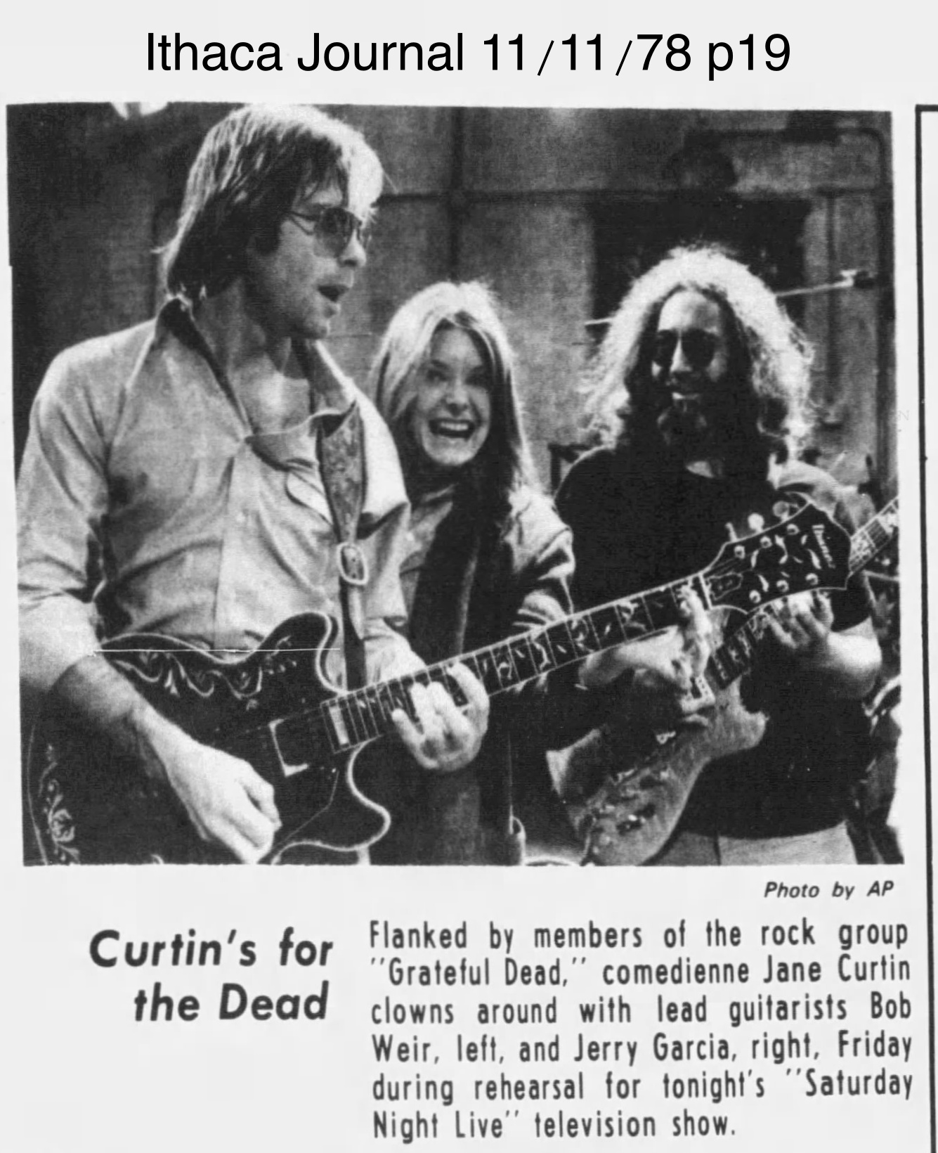 ref: "Saturday Night Live, New York, NY, Nov. 11, 1978 - Production, planning 1978," Grateful Dead Archive, Special Collections, UC Santa Cruz, MS332.ser.2, Box 30, Folder 21.