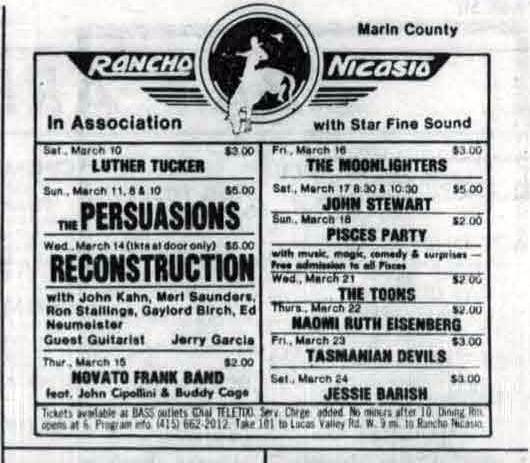 (Petaluma, CA), March 9, 1979, p. 5B, lists Kid Courage this night.