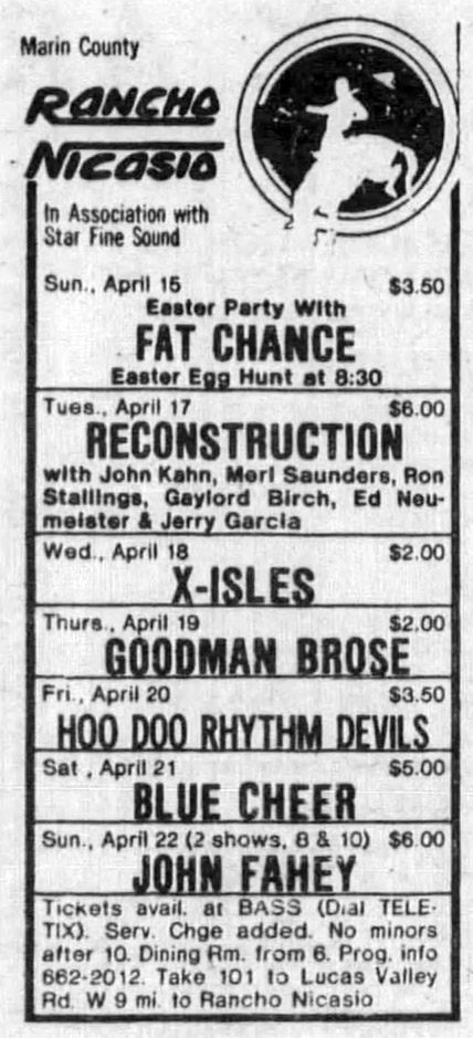 Nick: "4/17/79: 'we in church today!'" "The main reason to sing its praises is another (heretofore unknown to me) version of the mighty Sama Layuca, mislabeled in both filesets as Welcome to the Basement. It’s not quite as wild as the nutso 3/30/79 performance (ahem), mainly because only Ed Neumeister and Garcia take solos (Ron Stallings, Merl, and John Kahn all get moments in the 3/30 version). But holy moley, they throw down hard here. Garcia’s chomping at the bit, but Neumeister goes first. The band grooves hard underneath him, slowly loosens their grip, lets it get wild and hairy, then locks it back down, then loosens up again, and so on. I don’t know if Stallings was having a problem with his horn, but there’s a bit of float-time after Neumeister’s solo until Garcia steps up to bat and just nails it. After the same wild back-and-forth, it spills into some loud noisy space — listen close to how seamlessly Gaylord Birch snaps back into the groove of the song as the return for the ending. He’s such a fantastic drummer: over a very fast tempo (like 175 bpm), he easily shifts from tight control to unhinged freer playing with nary a stumble. Impressive! " Possible second saxophonist!