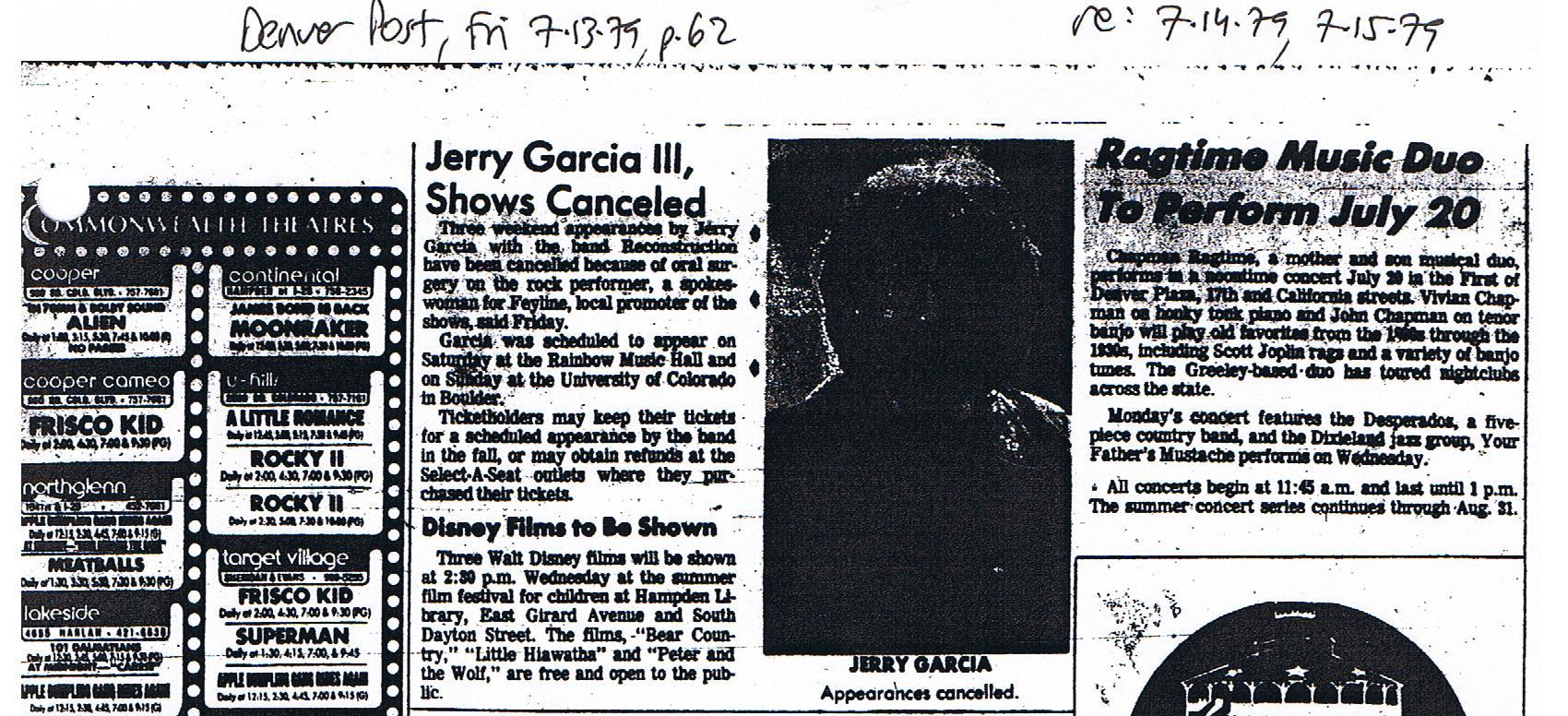 ref: "Jerry Garcia Ill, Shows Canceled,"