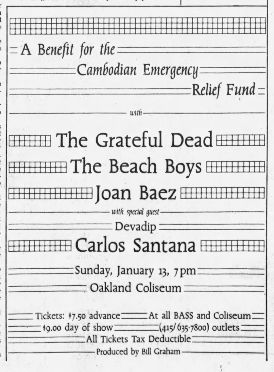 [1] birthday joke on Billy before [2] With John Cipollina on guitar and Carlos Santana on guitar [3] With Greg Errico on drums [4] Only performance [5] With Carlos Santana on guitar, Craig Chaquico on guitar, Joan Baez on vocals, Pete Sears on guitar, Brian Wilson on vocals, Carl Wilson on vocals, Dennis Wilson on vocals, and Mickey Thomas on vocals