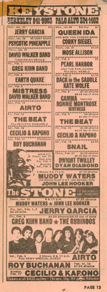 Corry Arnold has used the ad for this date as a lever to analyze the scheduling practices of JGB at Keystone. It's a great little micro analysis of a money relationship. Very Braudelian. Jerry Garcia Band Keystone Scheduling Overview