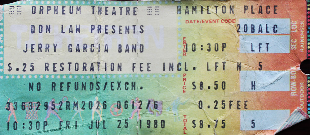 Lucrative little runout playing for John Scher. Greg Errico leaves the Garciaverse at the end of this tour, returning 10/13/82 at the Catalyst in Santa Cruz. That would kick off an eight-month stint with Errico at the drums, bringing a bashing power that would drive Garcia to play louder, and often better. That stint, ending 6/5/83 at the Chance club in Poughkeepsie, would be Errico's last.