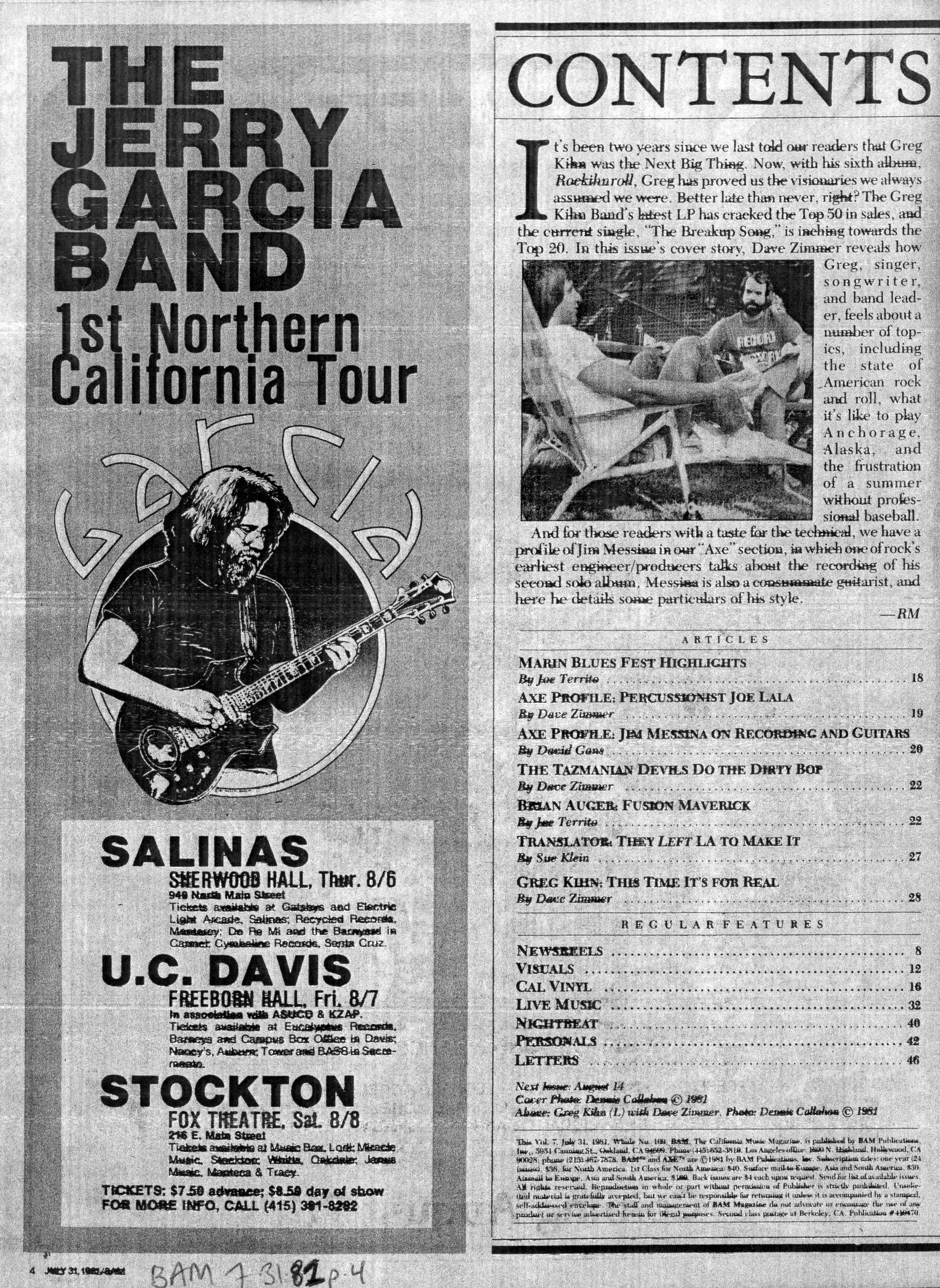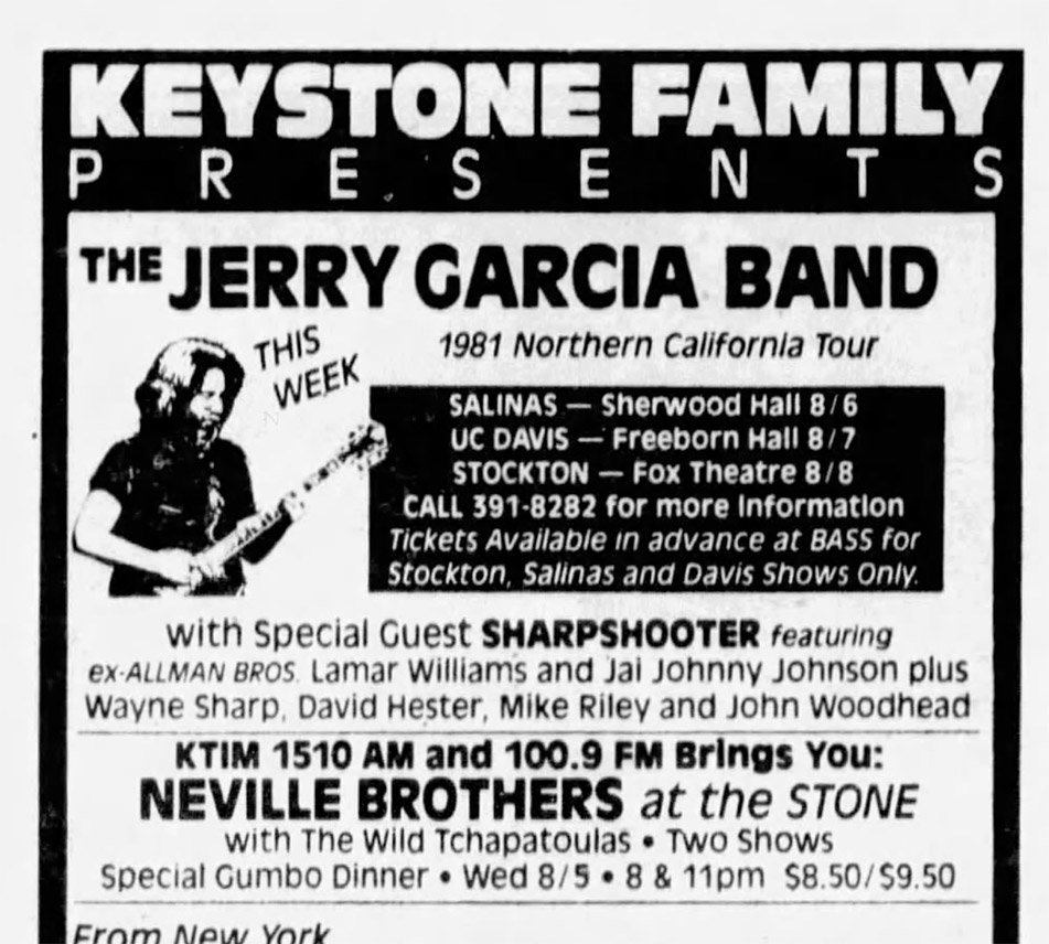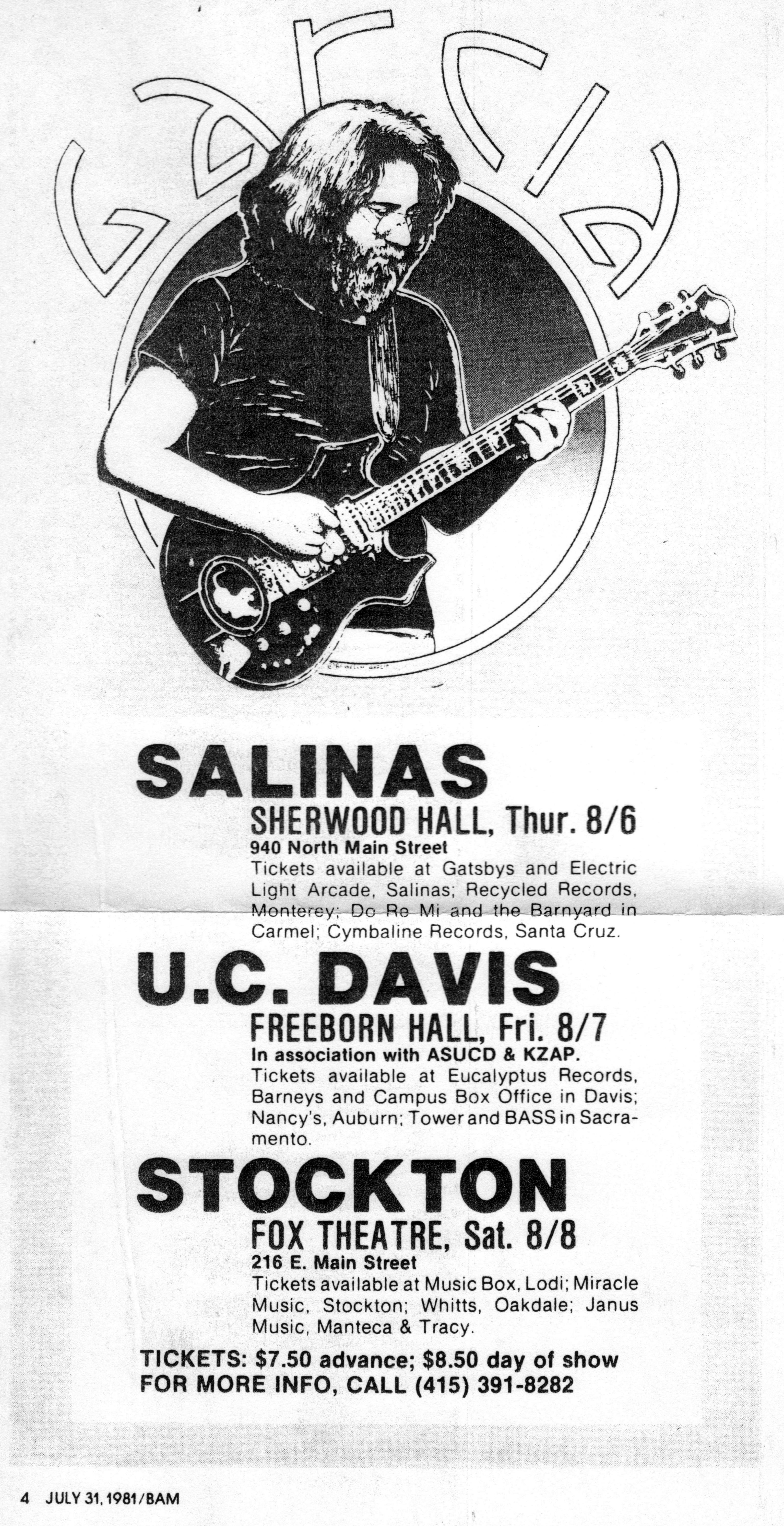ads: BAM, July 31, 1981, p. 4 |California Aggie, August 5, 1981, p. 9 |San Francisco Sunday Examiner and Chronicle Datebook, July 12, 1981, p. 9