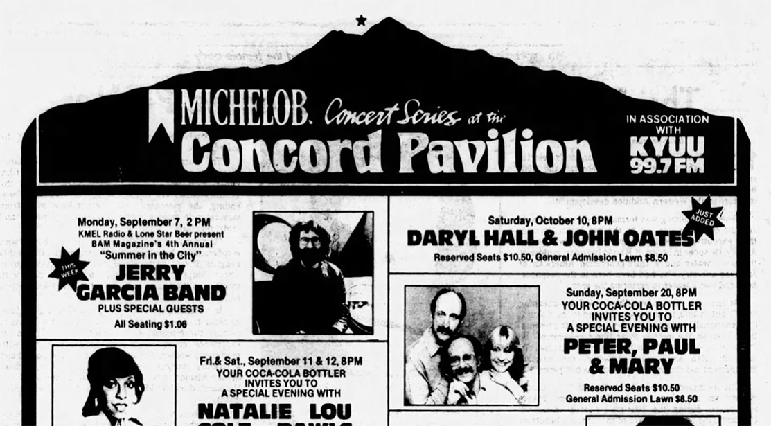 Benefit for B.A.M.A. (Bay Area Music Archives, then being "curated" by Paul Grushkin). The $1 ticket price was underwritten by KMEL - see lostlivedead post in references for more information. The band got $1,000 from BAM magazine for the gig (Concord Pavilion, "Show Files: Other: Jerry Garcia Band – revised fall schedule, 1981" Grateful Dead Archive, Special Collections, UC Santa Cruz, MS.332.ser. 3, box 167, folder 12).