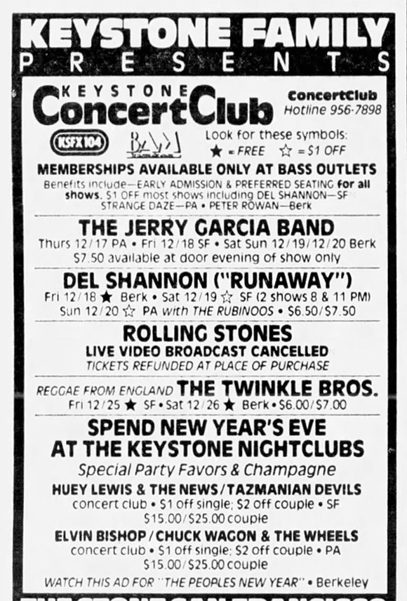 ads: San Francisco Sunday Examiner and Chronicle Datebook, December 6, 1981, p. 14 |San Francisco Sunday Examiner and Chronicle Datebook, December 13, 1981, p. 10