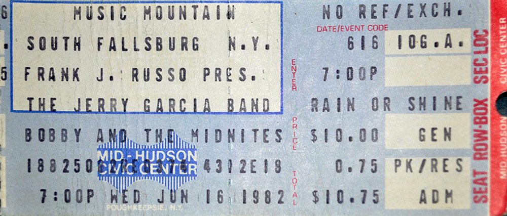 JERRY GARCIA BAND 6-16-1982 MUSIC MOUNTAIN SOUTH FALLSBURG NY