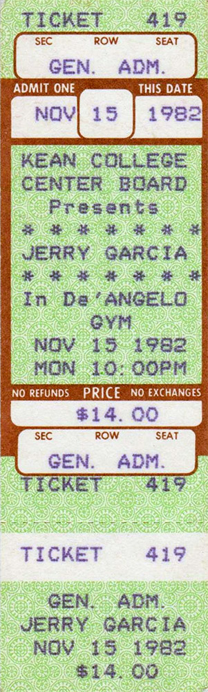 Final shows of the fall '82 JGB tour. Had originally been set for De Angelo Gym, but moved to Wilkins Theatre. Sue for the two shows: capacity 1,200 x 2 (2,400), tix $10 for students, $14 for non-students (max = 400 of these), GP $25,600. $15,000 guarantee plus 90% gross receipts after tax over $28,226 plus 100% difference between estimated non-variable expenses of $25,660 and actual expenses, plus $4,000 production fee.