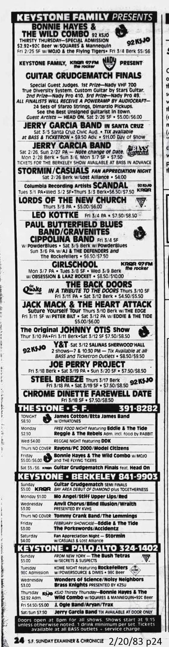 JERRY GARCIA BAND 3-7-1983 THE STONE SAN FRANCISCO CA