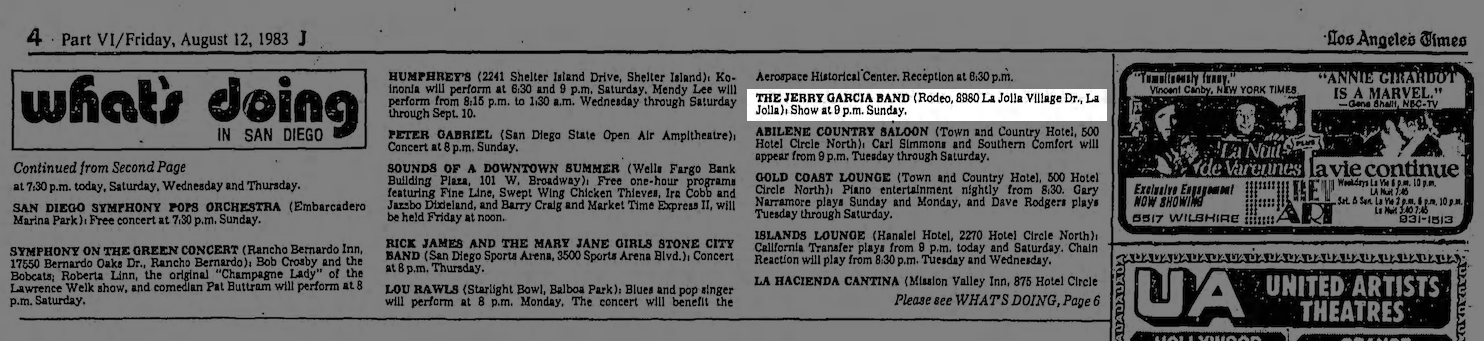 listing: San Diego Union, August 7, 1983, p. E-9
