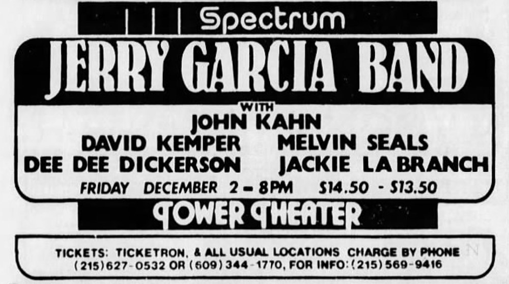 JERRY GARCIA BAND 12-2-1983 TOWER THEATER UPPER DARBY PA