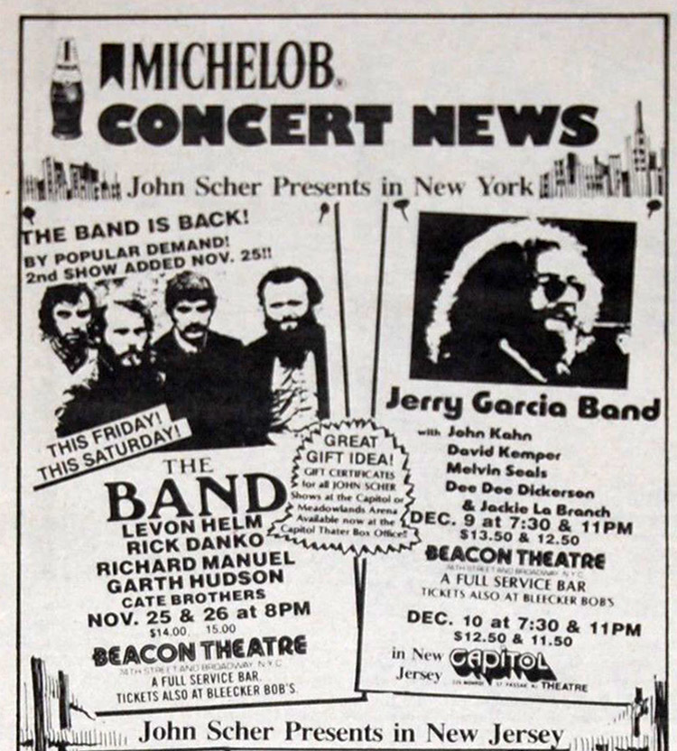 JERRY GARCIA BAND 12-9-1983 BEACON THEATER NEW YORK NY EARLY SHOW