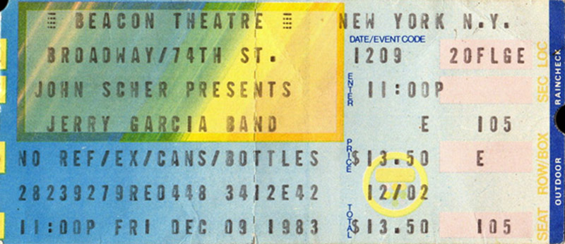 JERRY GARCIA BAND 12-9-1983 BEACON THEATER NEW YORK NY LATE SHOW