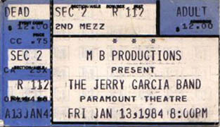JERRY GARCIA BAND 1-13-1984 SEATTLE PARAMOUNT NORTHWEST THEATER SEATTLE WA