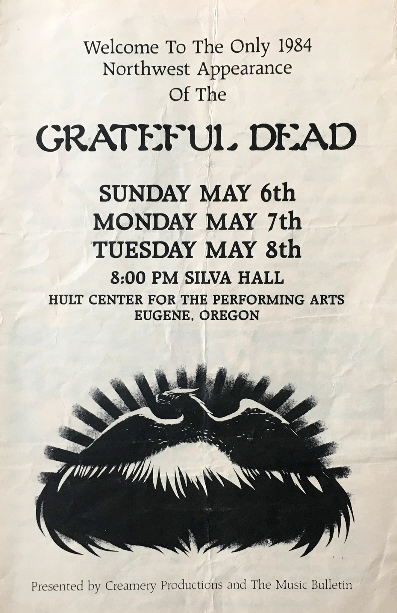 NB that the Krassner interview (100th monkey and all that) was recorded in Eugene "a few weeks" before the SEVA benefit, which was 6/21/84. Could have been around this run.