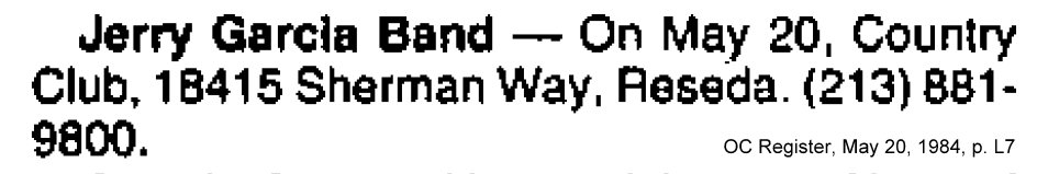 Jerry Garcia Band - 5/20/84 The Country Club, Reseda, CA