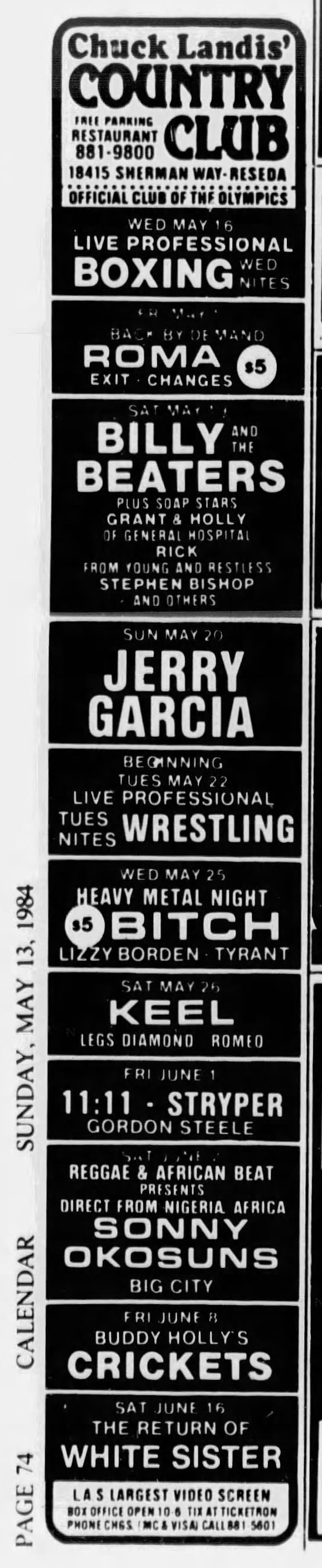 Killer Sugaree and final DDD: JGB at Country Club, Reseda, May 20, 1984