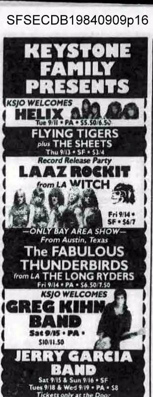 ad: San Francisco Sunday Examiner and Chronicle Datebook, September 9, 1984, p. 16