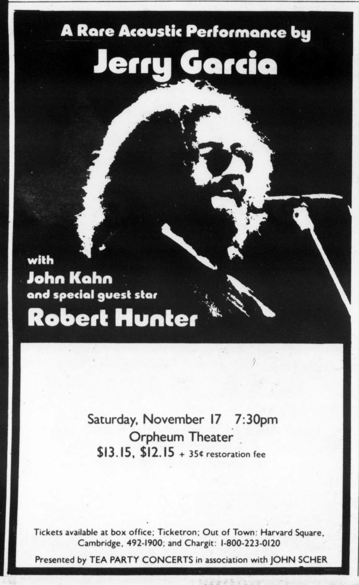 review: [negative] Gewertz 1984: This review in the Boston Herald ran under the headline "Garcia gives a dreadful concert". "Garcia delivered perhaps the worst single performance this writer has ever witnessed in a major concert". Yet the crowd went wild. His voice "ravaged and ruined". Deadheads were "dancing to some stereo in their own heads, not the plodding guitar and bass duets that wheezed from the stage." Garcia was "a listless troll lost in some inner world".