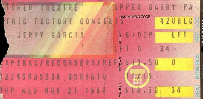 Jerry Garcia 1984-11-21 Tower Theatre SBD (New Soundboard from Darkstar Dan & Betty Cantor-Jackson!)