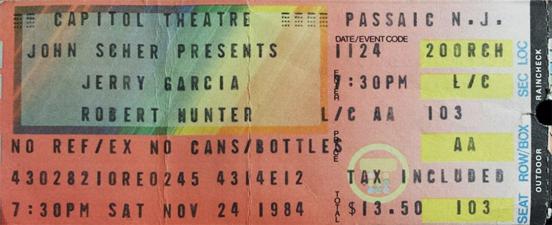 JERRY GARCIA AND JOHN KAHN 11-24-1984 CAPITOL THEATER PASSAIC NJ EARLY SHOW AND LATE SHOW