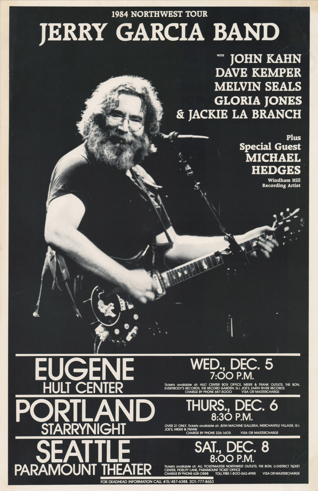 preview: Patrick MacDonald, "Country star will perform at the Arena," Seattle Times, December 7, 1984, p. 10-TEMPO. He specifically notes the band is the same is in January, except for new singer Gloria Jones.