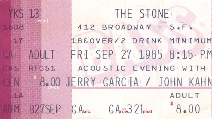JERRY GARCIA AND JOHN KAHN 9-27-1985 THE STONE SAN FRANCISCO CA