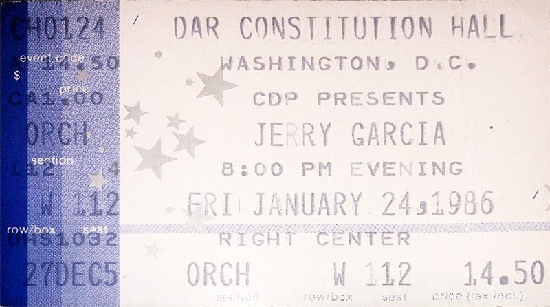 The January 1986 Garcia/Kahn acoustic tour --seven shows in nine days for John Scher in interesting, core- northeast halls-- was a lucrative proposition for the two partners. Billboard reported this show as a 3,741 sold sellout grossing more than $50,000. WaPo listing mistakenly gave Warner Theatre. JGBP notes that "every president since Calvin Coolidge has attended events" in this hall, which Jerry played on 11/2/75 Jerry Garcia Band; 11/27/83 Jerry Garcia Band; 8/8/84 Jerry Garcia Band; 11/20/84 John Kahn (acoustic); 1/24/86 John Kahn (acoustic).