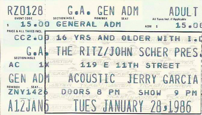 Jerry Garcia and John Kahn - 1/28/86 - The Ritz, New York City, NY - sbd