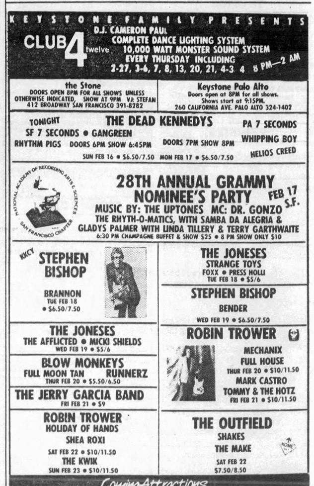 Jerry Garcia Band - 2/21/86 - The Stone - San Francisco, CA - aud
