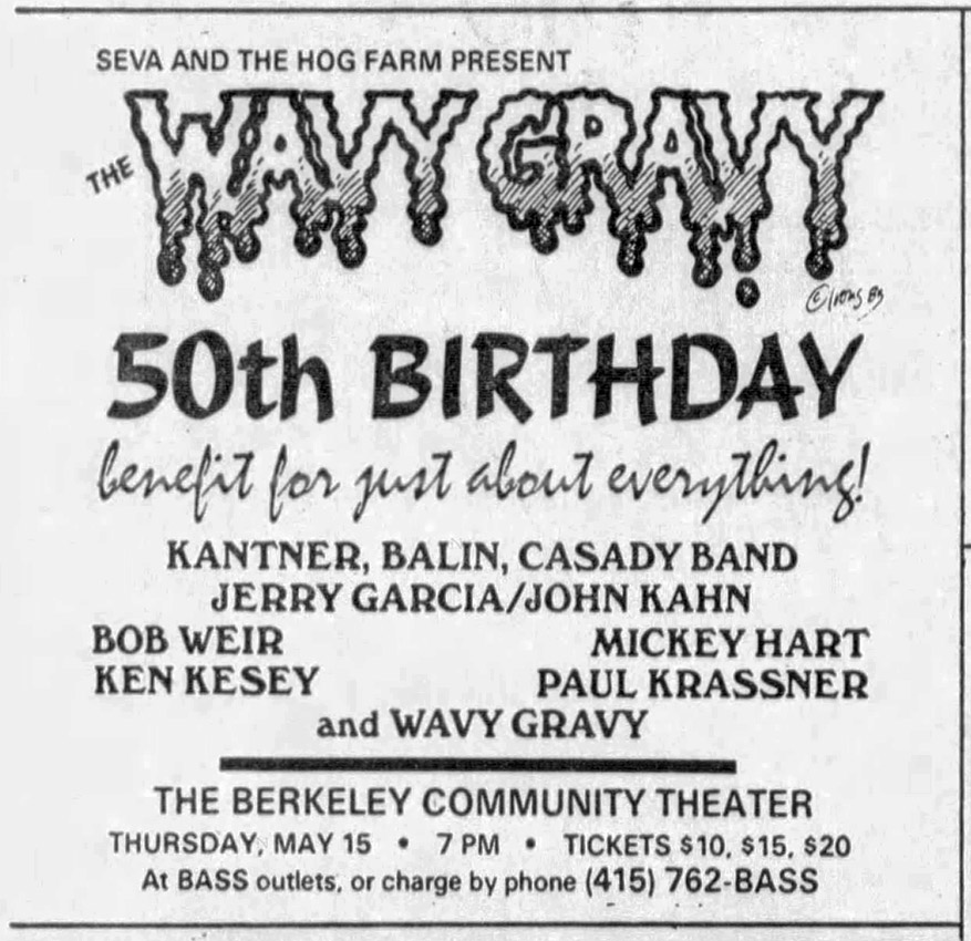 Seva and the Hog Farm Present Wavy Gravy's 50th Birthday Benefit for Just About Everything.