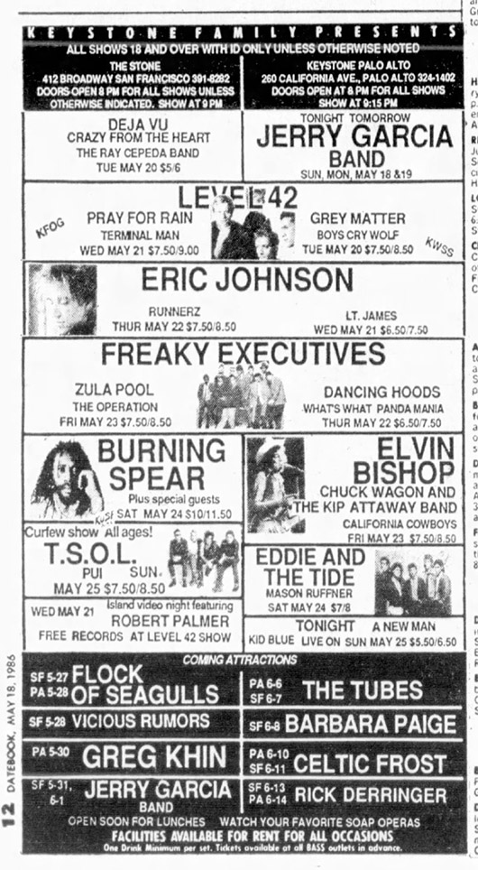 JGB - Keystone Palo Alto May 1986