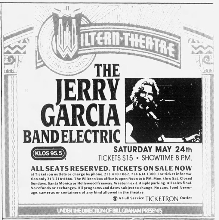 Jerry Garcia Band - 5/24/86 Wiltern Theatre, Los Angeles, CA