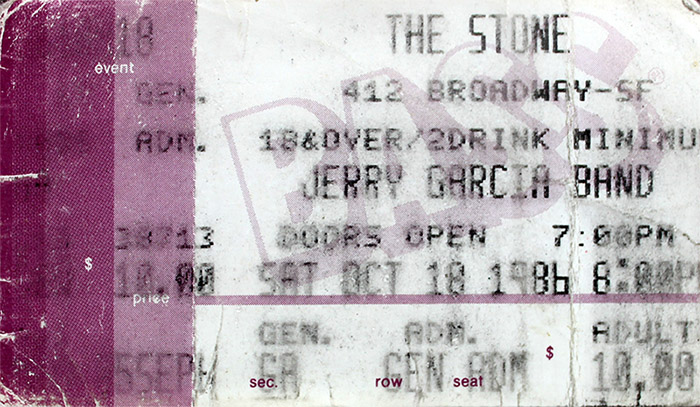 JERRY GARCIA BAND 10-18-1986 THE STONE SAN FRANCISCO CA