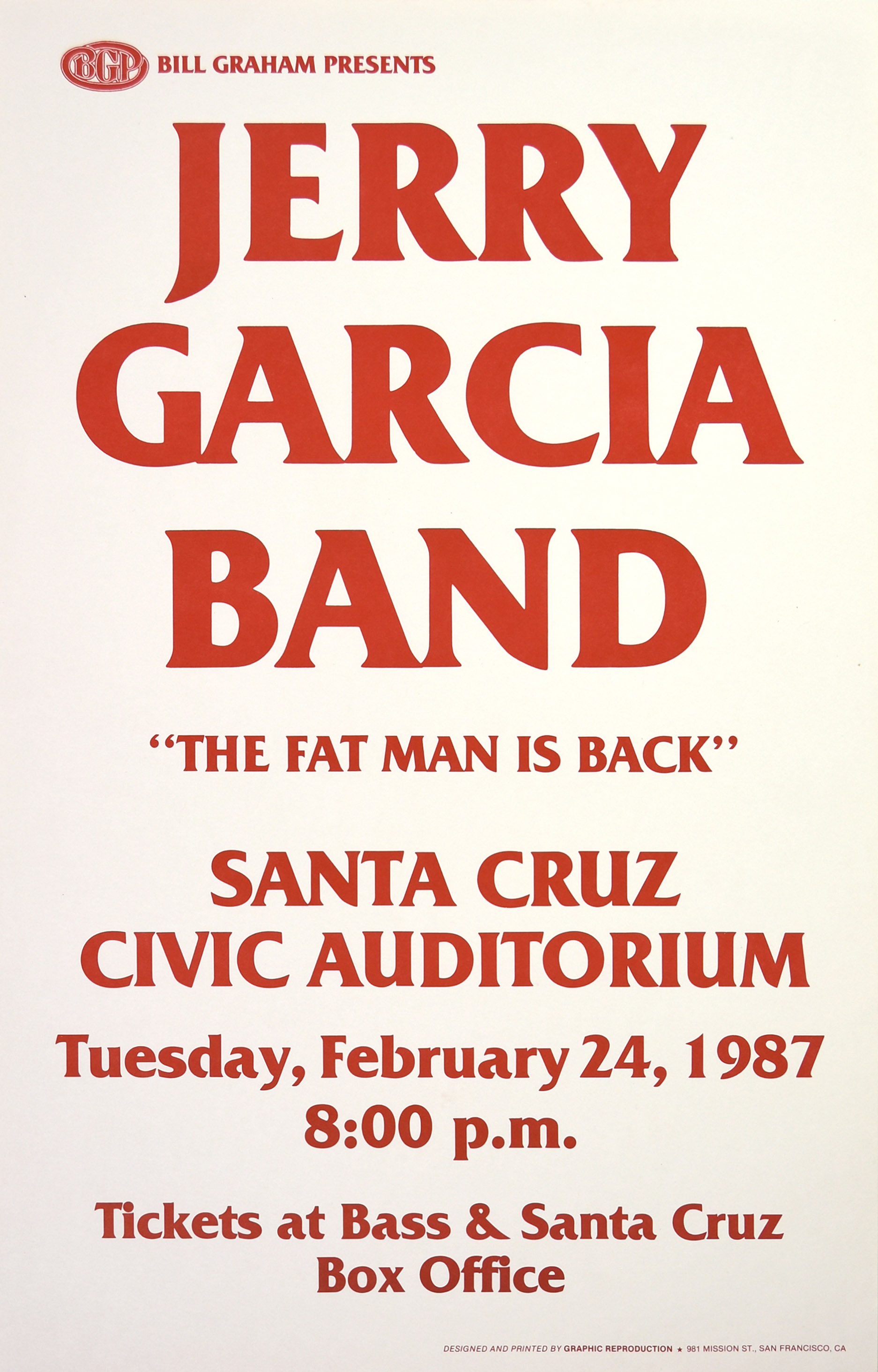 JERRY GARCIA BAND 2-24-1987 CIVIC AUDITORIUM SANTA CRUZ CA