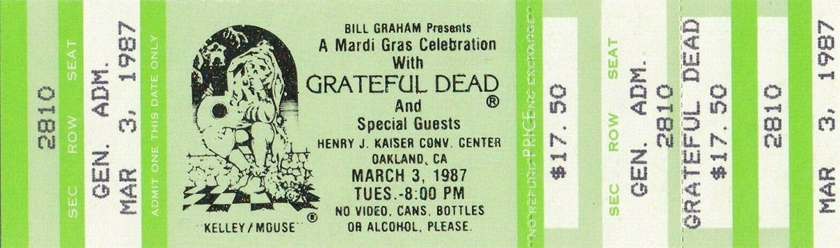 "From Steve Marcus: In case you were wondering, 3/3/87 opened with Quinn The Eskimo because Bob Dylan was at this concert. When asked to sit in he said he would rather watch from the audience so he went out by the soundboard for the first few songs and then had to leave to catch his plane back to Los Angeles..." (per Charlie Miller)