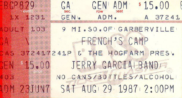 JERRY GARCIA BAND/JERRY GARCIA ACOUSTIC BAND 8-29-1987 FRENCH'S CAMP ON THE EEL RIVER PIERCY CA