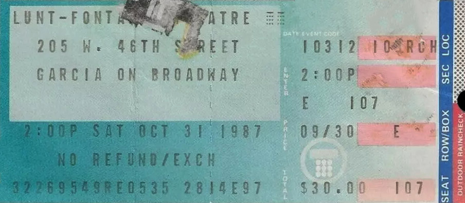 • Regarding Garcia on Broadway personnel, we have not pinned down nights when Kenny Kosek (fiddle) played w JGB, though we know he was not present for 10/28/87a.