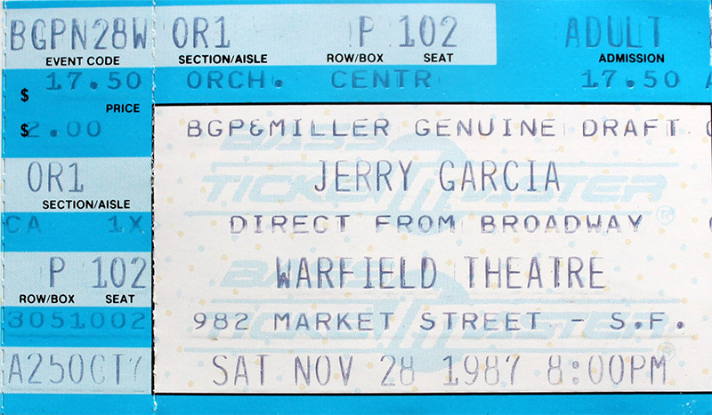 JERRY GARCIA BAND AND JERRY GARCIA ACOUSTIC BAND 11-28-1987 WARFIELD THEATER SAN FRANCISCO CA