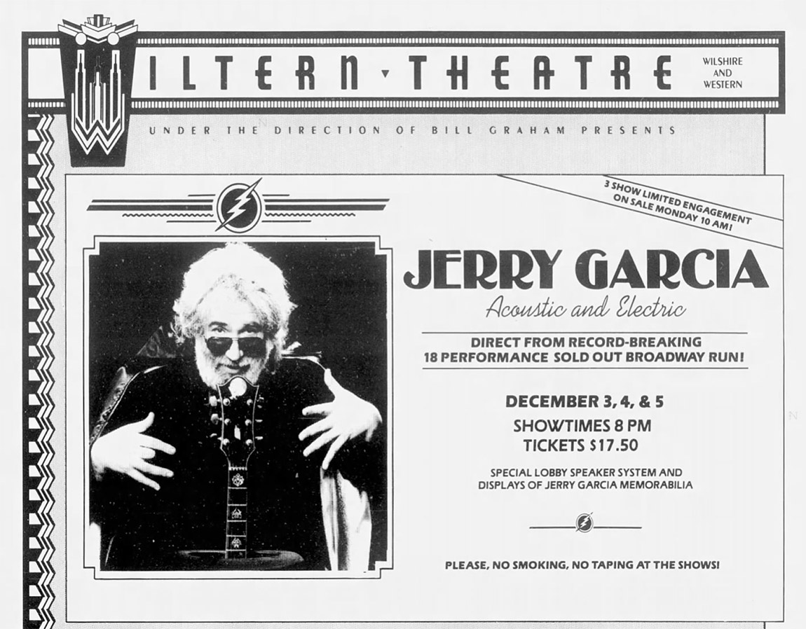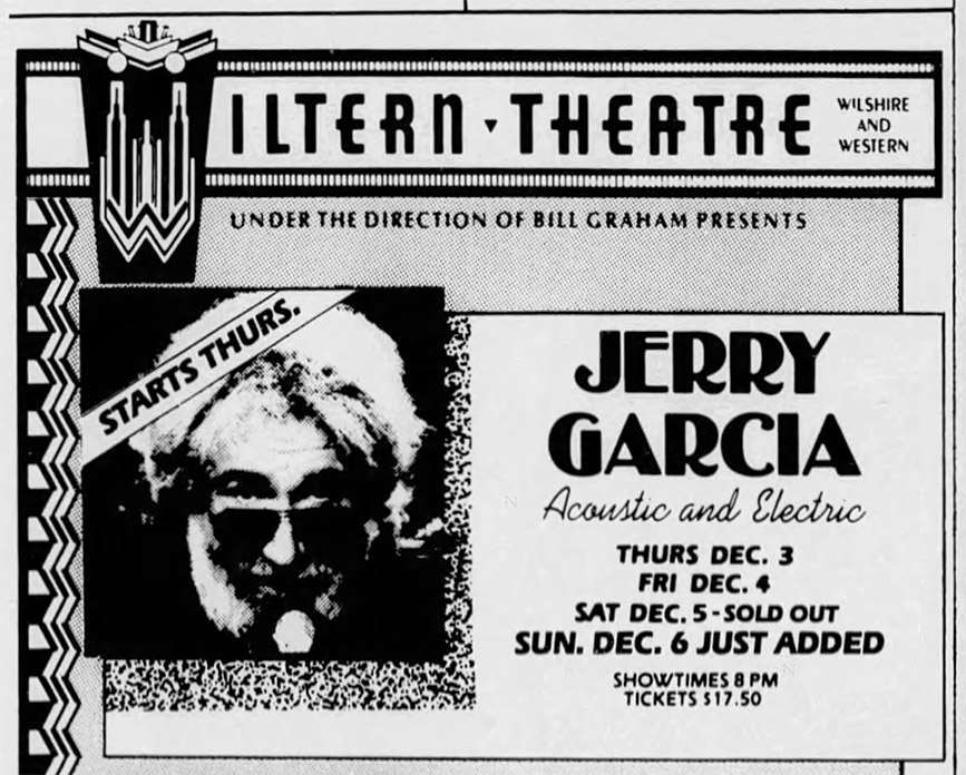 JERRY GARCIA BAND AND JERRY GARCIA ACOUSTIC BAND 12-6-1987 WILTERN THEATRE LOS ANGELES CA