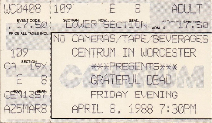 Grateful Dead The Centrum, Worcester, MA 4/8/88 Partial Set 1