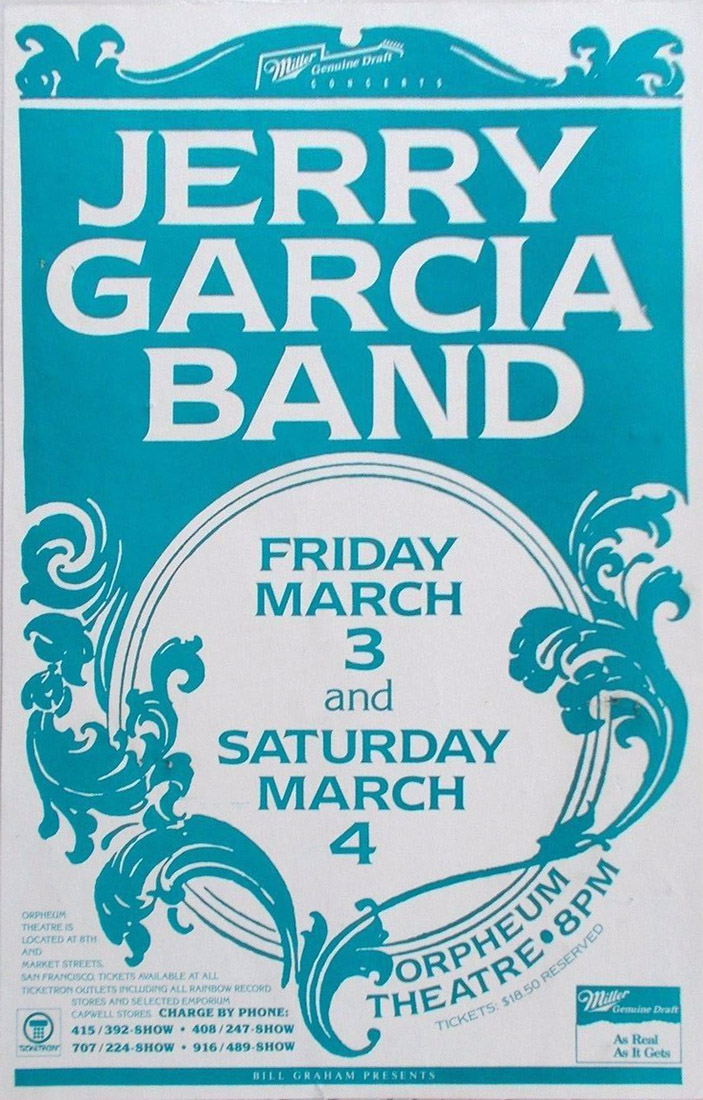 Jerry Garcia Band 3-3-1989 Orpheum Theatre - San Francisco, Ca