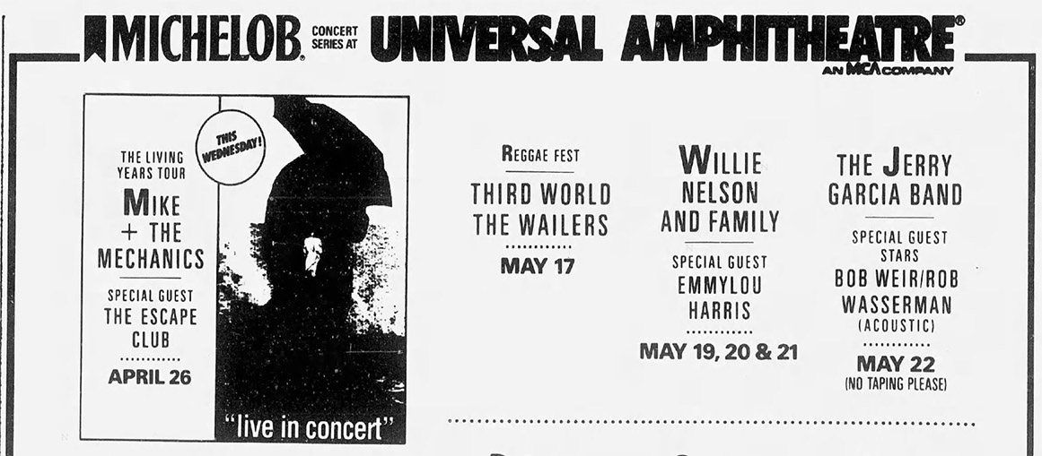 JERRY GARCIA BAND 5-22-1989 UNIVERSAL AMPHITHEATRE UNIVERSAL CITY CA