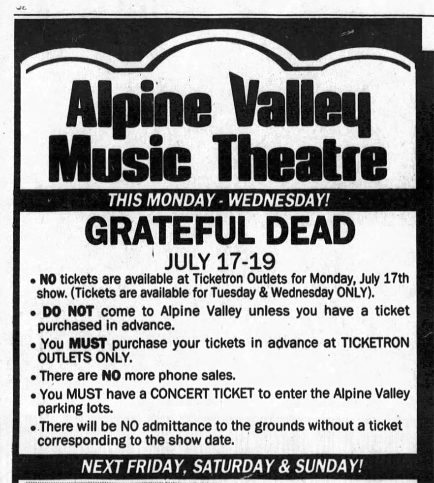 Grateful Dead 7-18-89 Alpine Valley East Troy WI