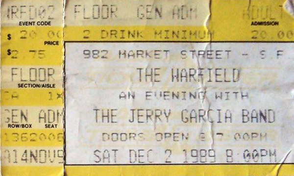 JERRY GARCIA BAND 12-2-1989 WARFIELD THEATRE SAN FRANCISCO CA