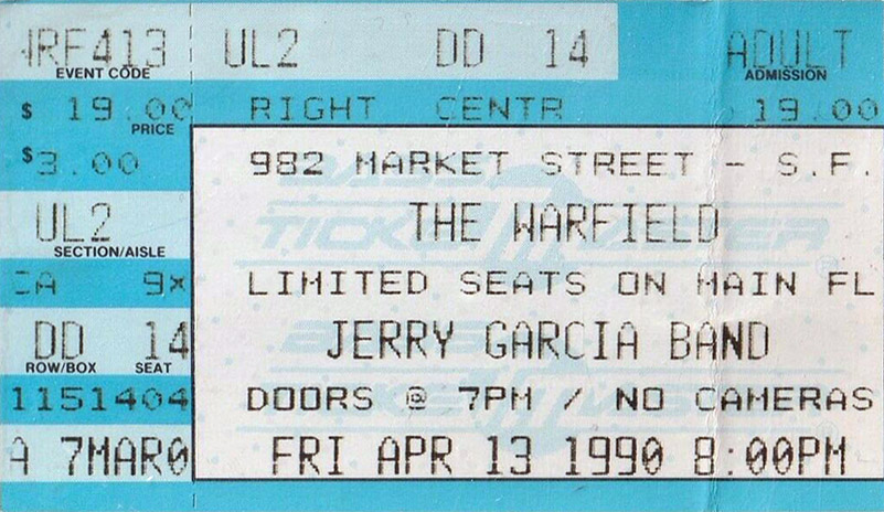JERRY GARCIA BAND 4-13-1990 WARFIELD THEATER SAN FRANCISCO CA