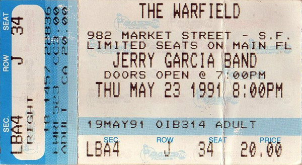 JERRY GARCIA BAND 5-23-1991 WARFIELD THEATER SAN FRANCISCO CA